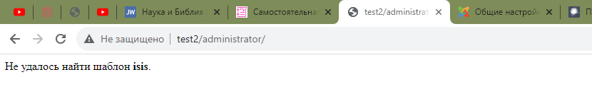 Не получается зайти в администратор сайта test2. Выдает ошибку Не удалось найти шаблон isis.